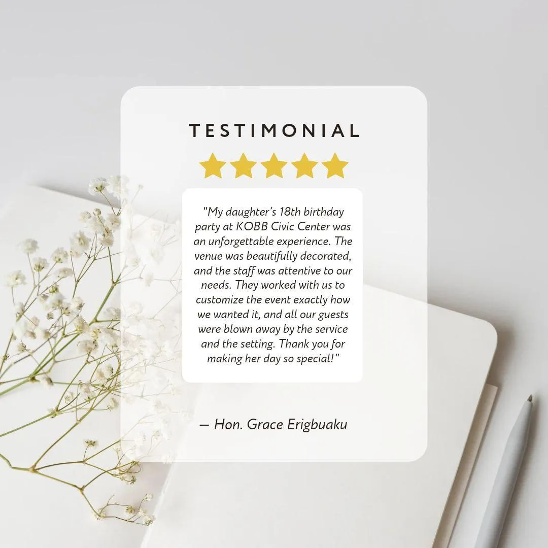 Introducing KOBB CIVIC CENTER, a premier facility offering a wide range of hospitality services, including versatile hall rentals, an upcoming restaurant, a modern gym, and a luxurious five-star hotel. Conveniently located in a peaceful setting along shoprite off Ogui Road in Enugu State, our venue is designed to provide an exceptional experience.